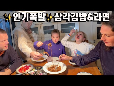 삼각김밥 같이 만들고 라면 끓여줬더니 난리 난 네덜란드 초딩들 ?